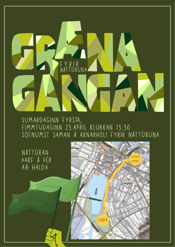 Þann 23. apríl næstkomandi, sem er dagur jarðar, mun Umhverfishópur U3A slást í för með öðrum náttúruverndarsamtökum á Íslandi til að vekja athygli almennings á helstu ógnunum við umhverfið og þrýsta á stjórnvöld um sterkari aðgerðir í umhverfis- og loftslagsmálum. Gengið verður frá Arnarhóli klukkan 13:30 út í Hljómskálagarð. Vonandi sjáum við sem flesta félaga U3A Reykjavík í göngunni.
